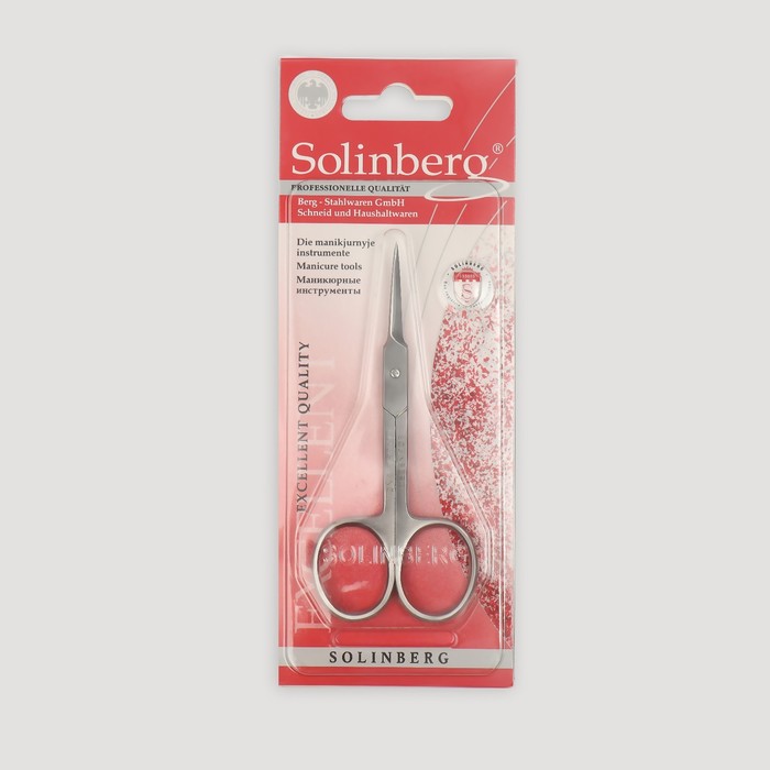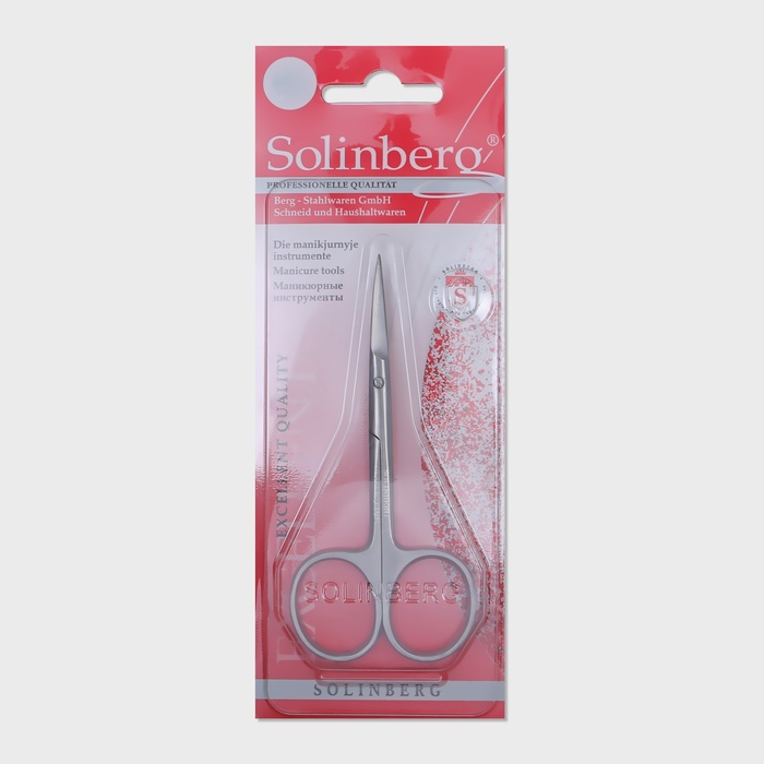 Ножницы маникюрные Solinberg, для кутикулы, загнутые, узкие, 10 см, в блистере, цвет матовый серебристый, 62000/2 — Характеристики