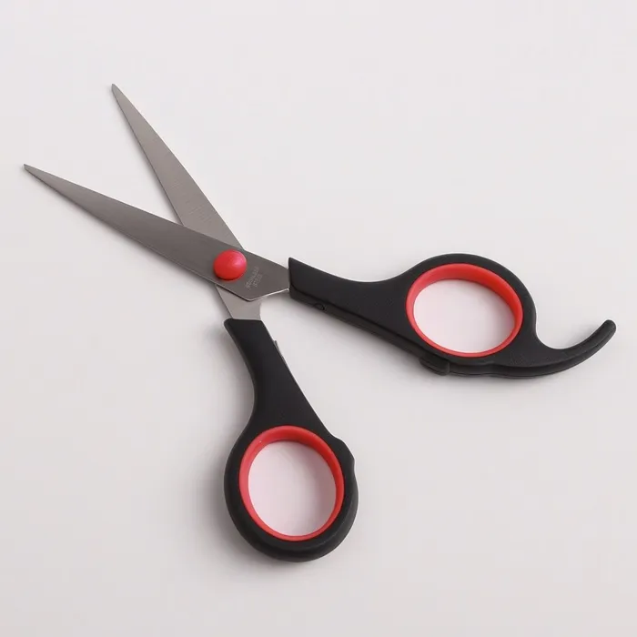 Ножницы парикмахерские с упором, лезвие — 7 см, цвет чёрный/красный