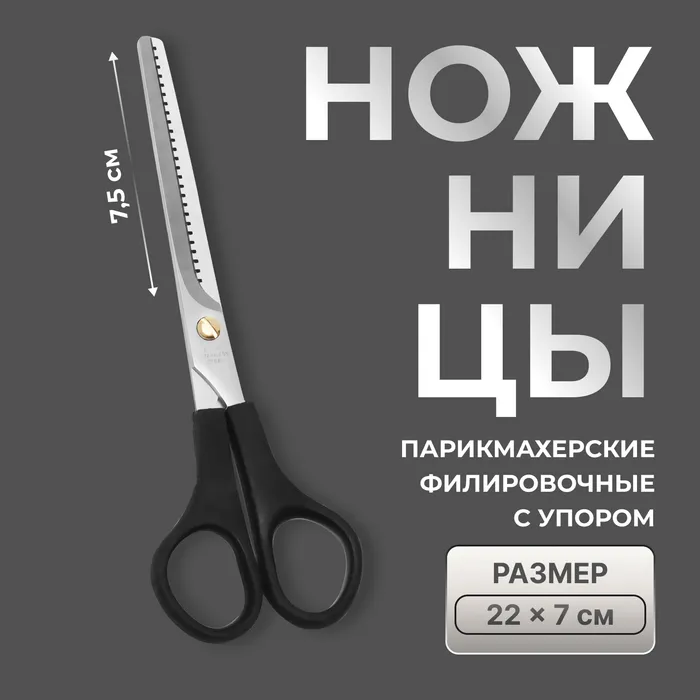 Ножницы парикмахерские с упором, лезвие — 7 см, цвет чёрный/красный — Характеристики