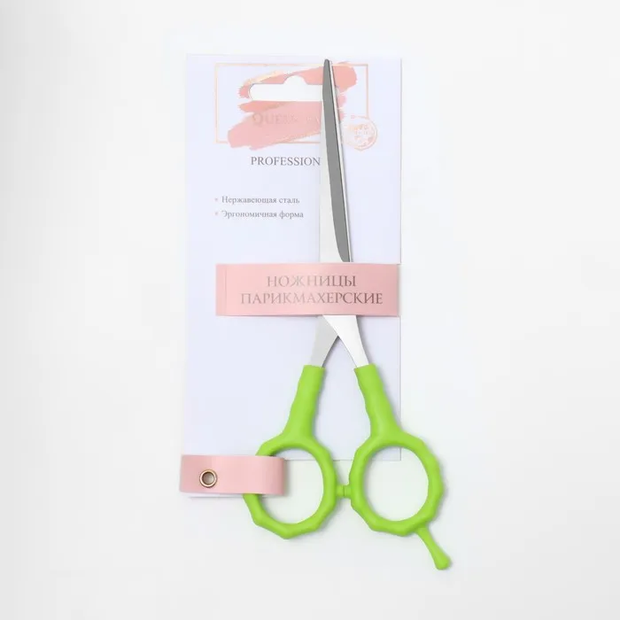 Ножницы парикмахерские с упором, лезвие — 7 см, цвет салатовый/серебристый — Характеристики