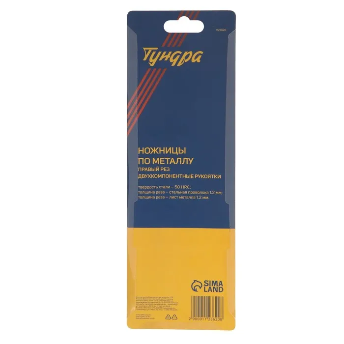 Ножницы по металлу ТУНДРА, 2К рукоятки, правый рез, 250 мм — Характеристики