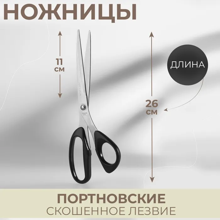 Ножницы портновские, скошенное лезвие, 10'', 26 см, чёрные — Характеристики
