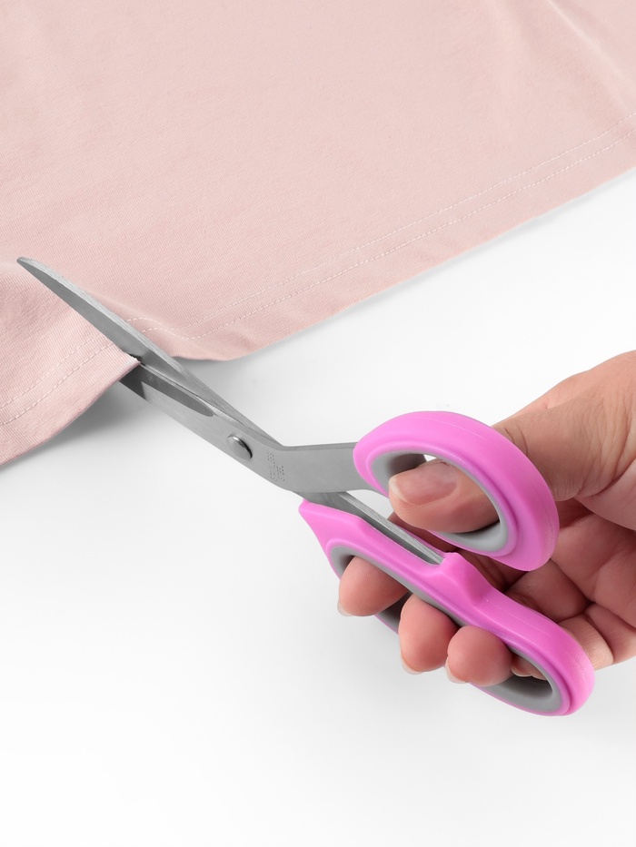 Портновские ножницы устойчивы к деформациям, хорошо разрезают материал. Инструмент справляется как с лёгкими, так и с более грубыми тканями, аккуратно отрезает край и не деформирует материал.