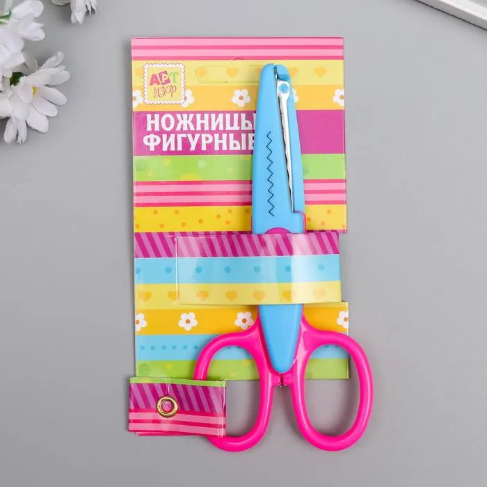 Удобный и полезный инструмент для декорирования края бумаги. С помощью фигурных ножниц можно эффектно украсить страницы фотоальбомов или открыток: достаточно сделать лишь несколько взмахов ножницами, и привычные ровные бумажные края приятно преобразятся. Чтобы ножницы служили дольше, лучше использовать их по прямому назначению.