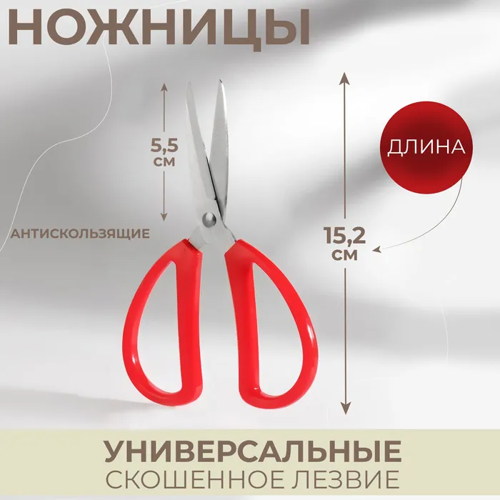 Ножницы универсальные, скошенное лезвие, 6", 15.2 см, красные — Характеристики
