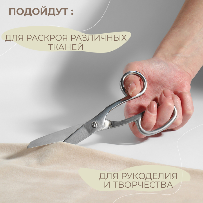 Для наиболее точного подреза краёв, вырезки углов и осноровки деталей швеи используют закройные ножницы: их форма позволяет раскраивать ткань с минимальным подъёмом полотна.