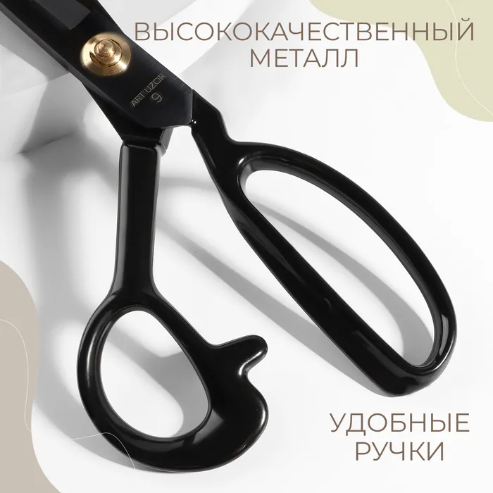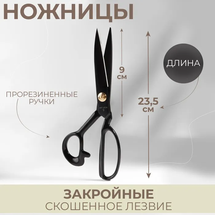 Ножницы закройные, скошенное лезвие, прорезиненные ручки, 9", 23.5 см, чёрные — Характеристики