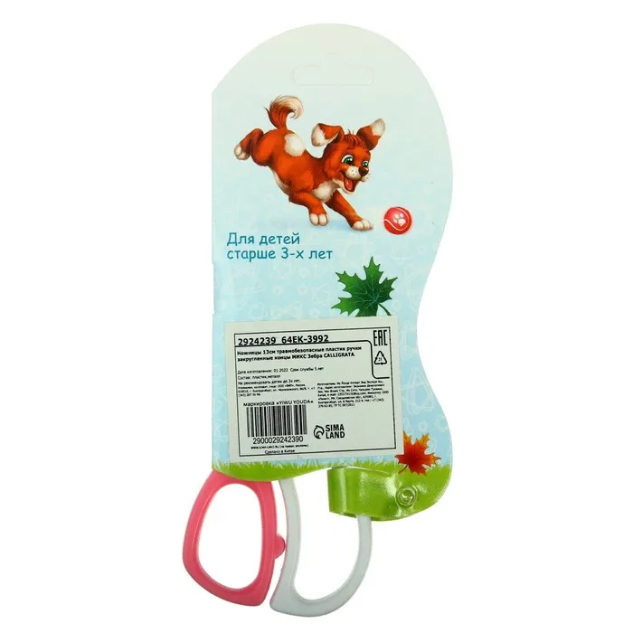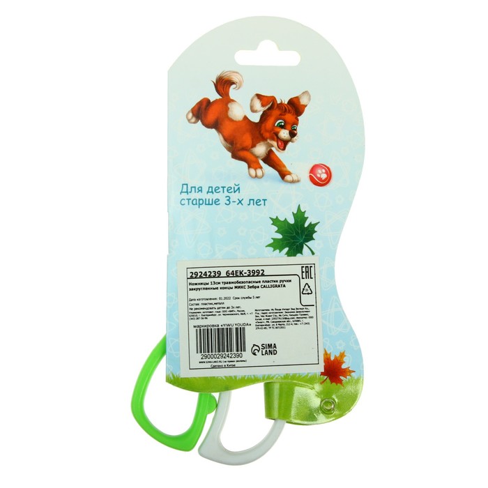 Ножницы «Зебра», 13 см, (травмобезопасные), пластиковые ручки, закруглённые концы, корпус МИКС — Характеристики