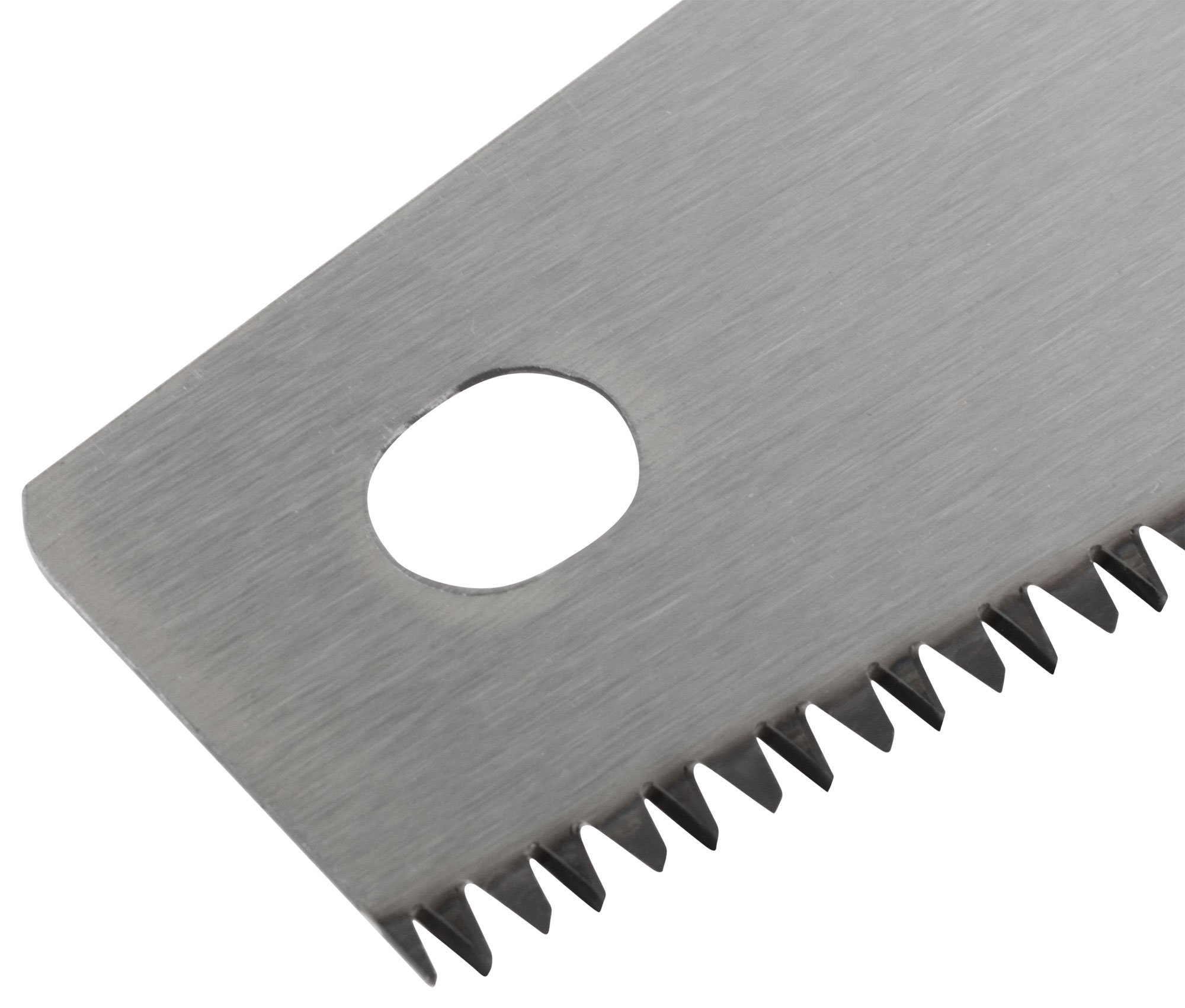 Изготовлена из высокоуглеродистой инструментальной стали, ножовка обладает высокой прочностью и долговечностью. Прорезиненная пластиковая ручка обеспечивает надежный и комфортный захват, снижая усталость при длительной работе.