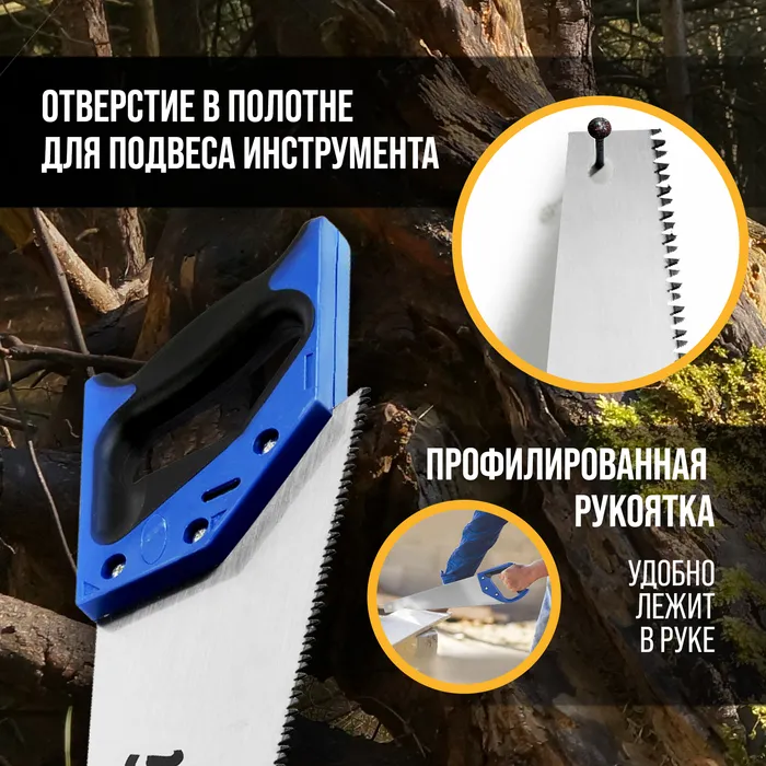Двухкомпонентная рукоятка за счет своей профилированности удобно лежит в руке при работе. Зубья разведены, что обеспечивает гладкость реза.