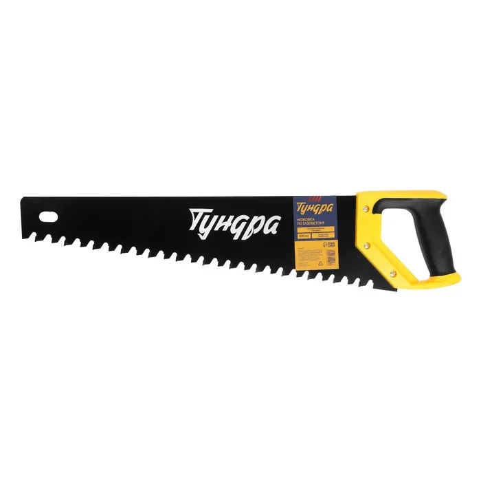 Ножовка ТУНДРА предназначена для работы с газобетоном. Имеет удобную рукоятку, а также крупные зубья, благодаря которым способна разрезать твёрдые материалы.