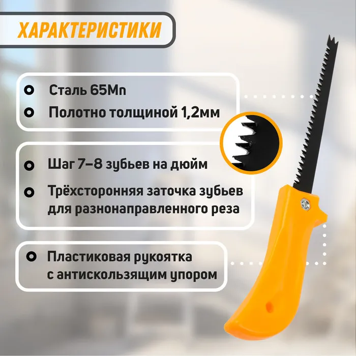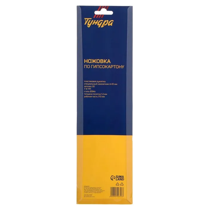 Ножовка по гипсокартону ТУНДРА, спец. наконечник d=10 мм, заточка 3D, 7-8 TPI, 170/280 мм — Характеристики