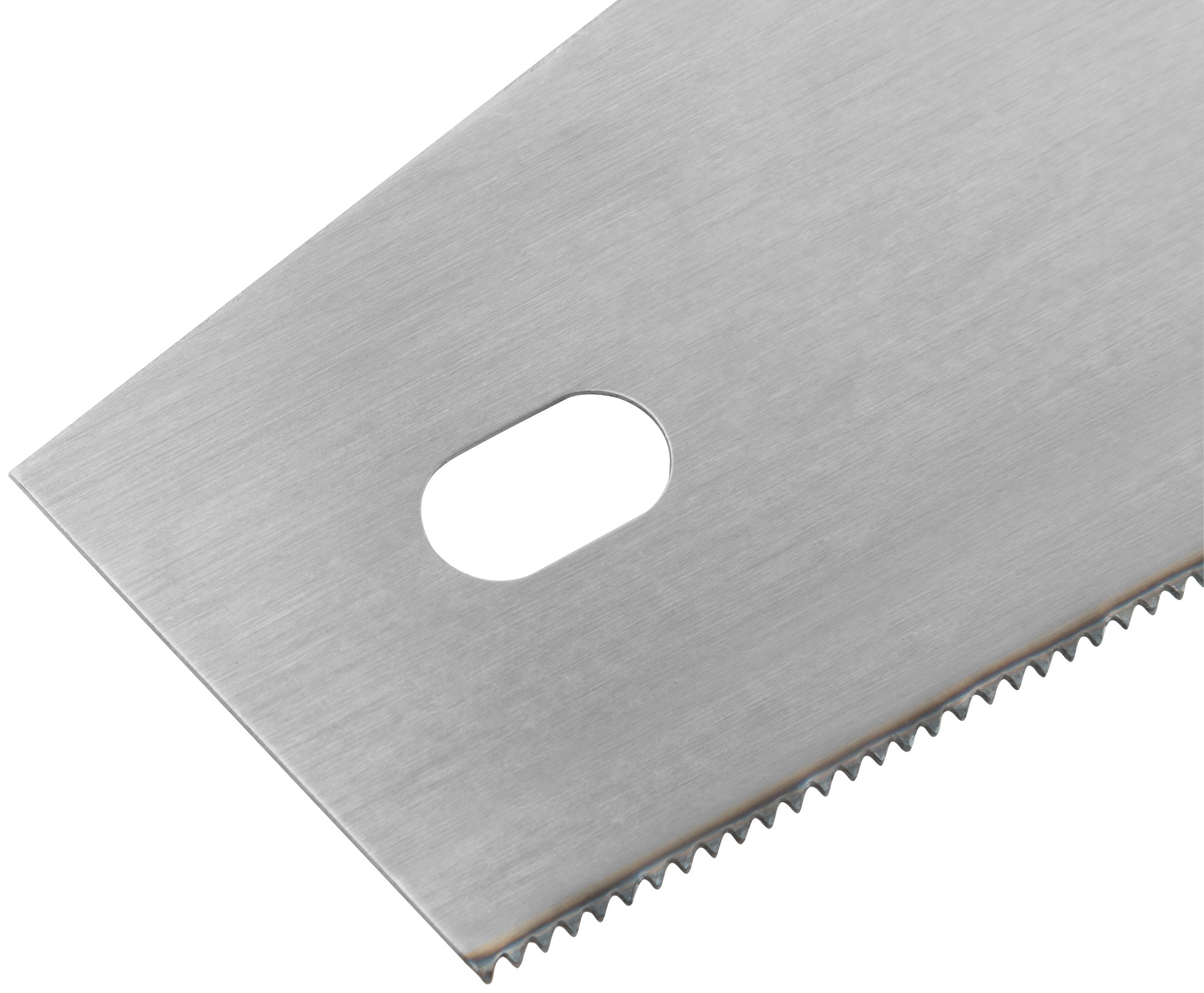 Эта ножовка станет незаменимым инструментом для плотников и укладчиков ламината, позволяя точно и аккуратно резать ламинат, паркетную доску и фанеру. Ее мелкий каленый зуб с шагом 2 мм обеспечивает чистый срез без сколов, что особенно важно при работе с декоративными материалами.