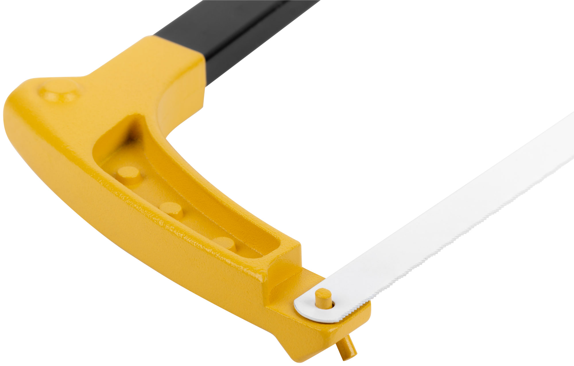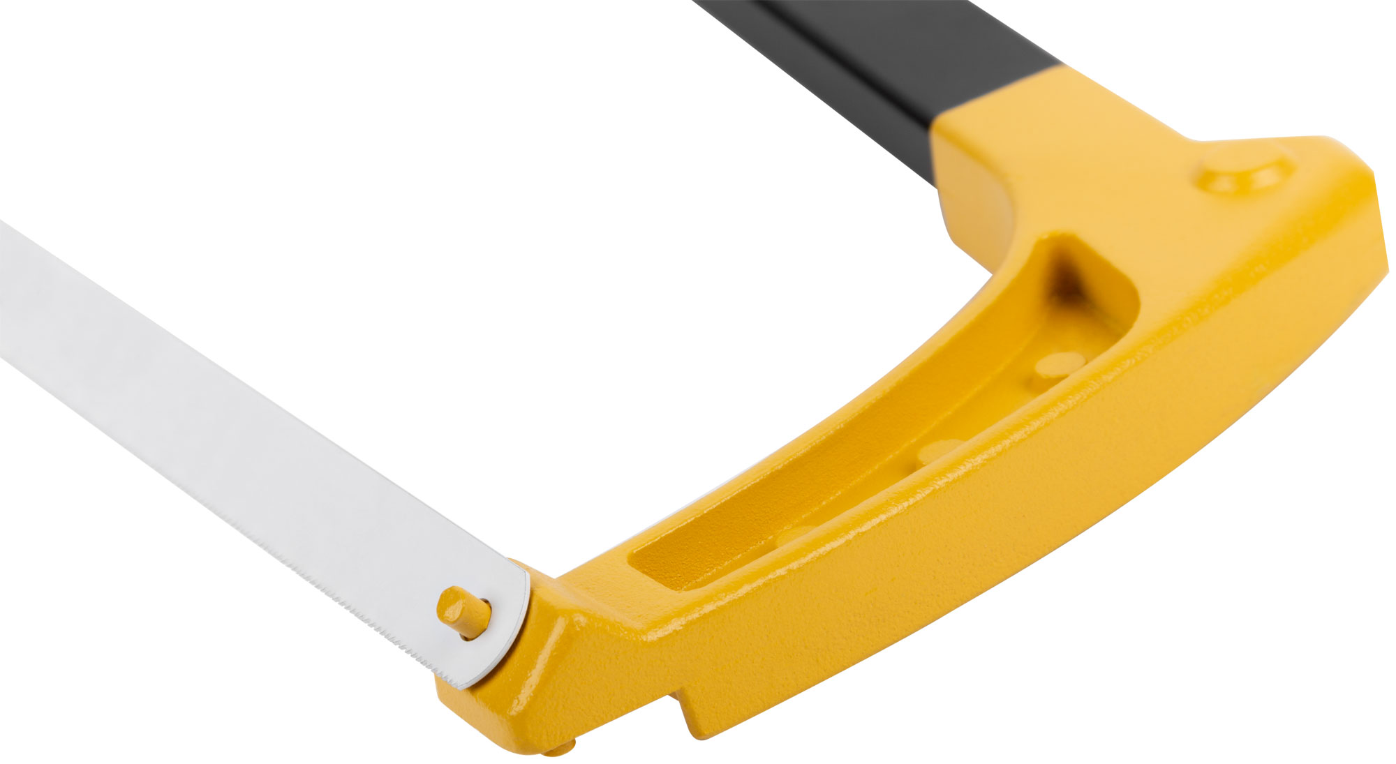 Эта ножовка обладает полой рамой из алюминия, что делает её лёгкой и удобной в использовании. Гибкое биметаллическое полотно обеспечивает высокую износостойкость и долговечность, а прорезиненная ручка гарантирует комфортный и безопасный хват.