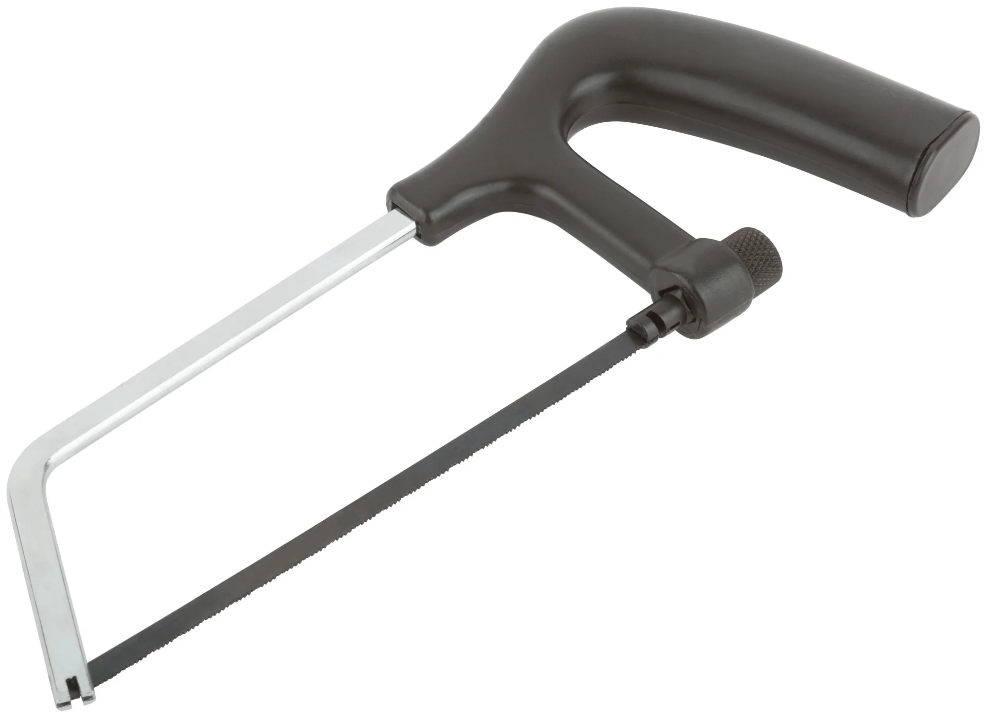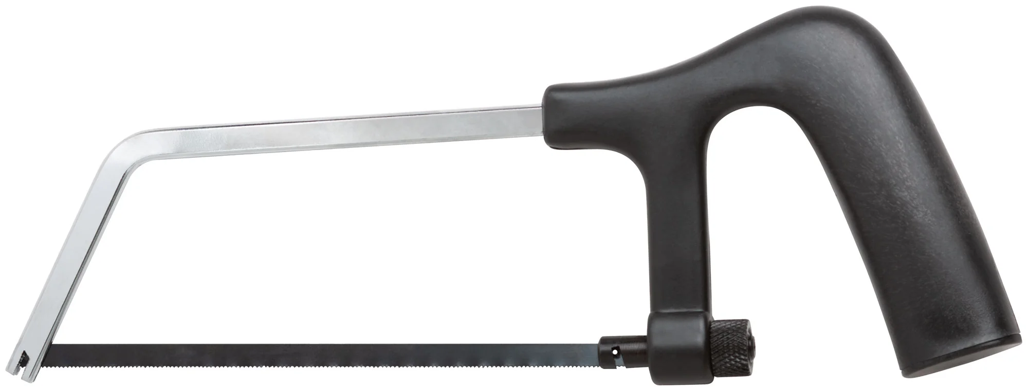 Ножовка выполнена из высококачественной инструментальной стали, что обеспечивает ее долговечность и надежность в эксплуатации. Черная пластиковая ручка эргономична и позволяет комфортно удерживать инструмент, снижая усталость при длительной работе.