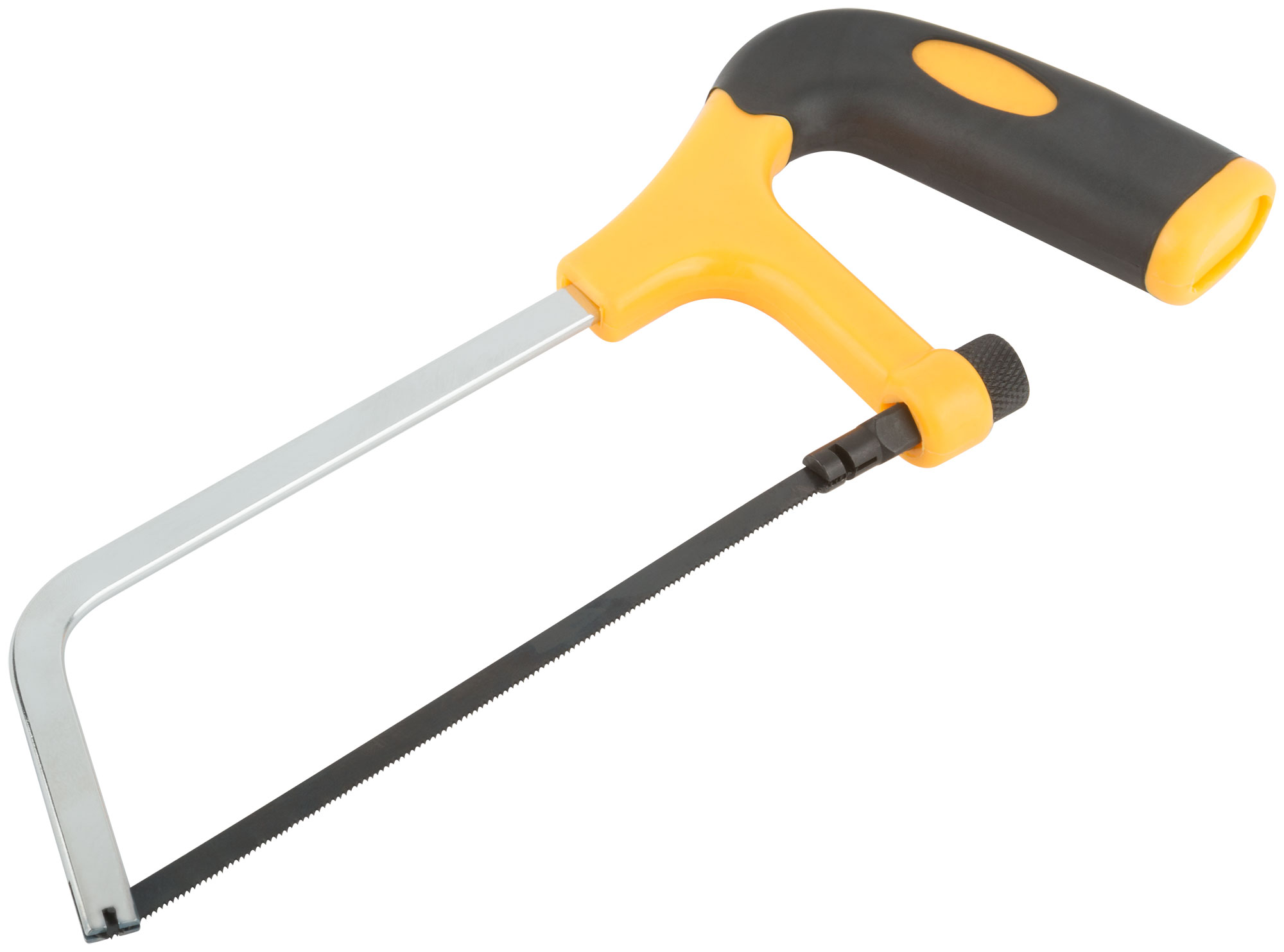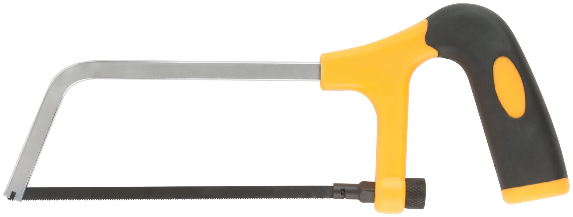 Рамка ножовки изготовлена из прочной инструментальной стали, что гарантирует надежность и долговечность инструмента. Пластиковая ручка с прорезиненной вставкой обеспечивает комфортный и надежный хват, что особенно важно при длительной работе.