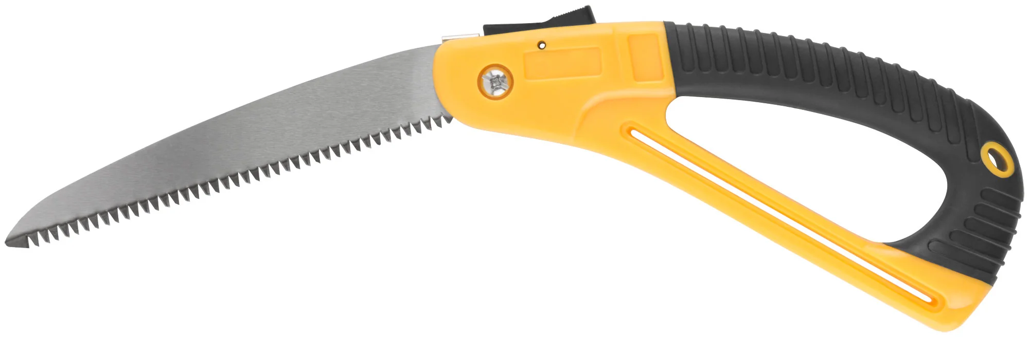 Эта складная ножовка оснащена полотном из термообработанной высокоуглеродистой инструментальной стали, что обеспечивает долговечность и надежность. Прорезиненная эргономичная ручка из ABS пластика обеспечивает удобство в работе и контроль над инструментом.