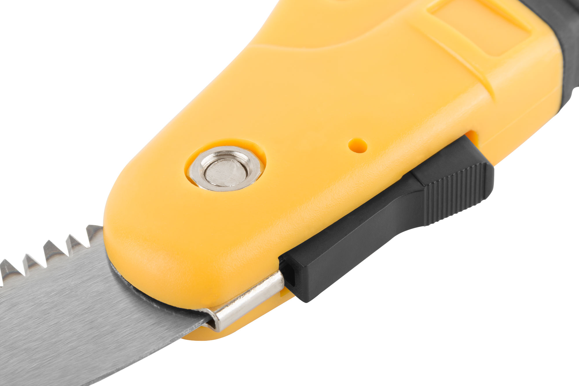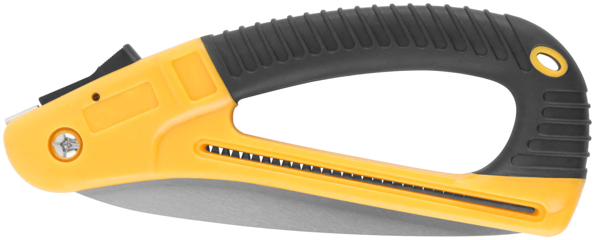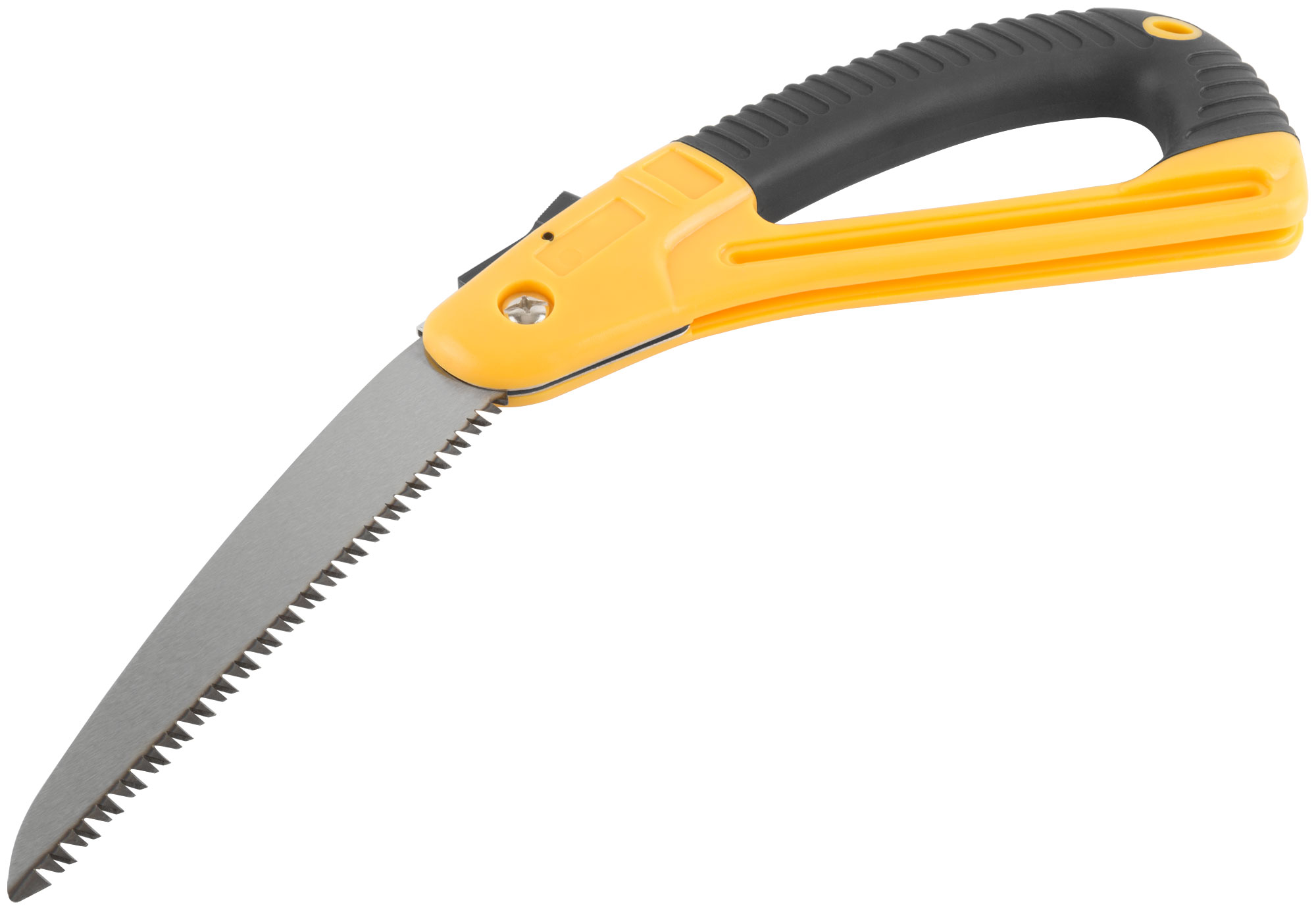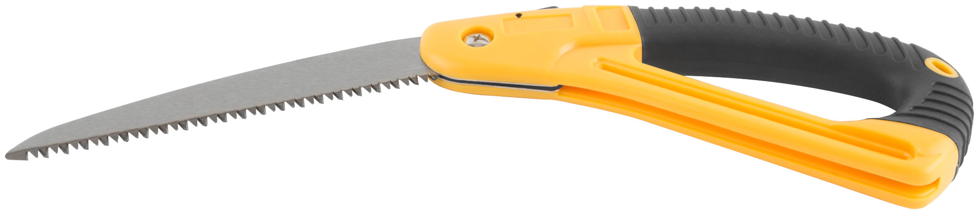 Эта складная ножовка оснащена полотном из термообработанной высокоуглеродистой инструментальной стали, что обеспечивает долговечность и надежность. Прорезиненная эргономичная ручка из ABS пластика обеспечивает удобство в работе и контроль над инструментом.