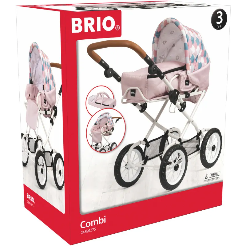 Классически оформленная кукольная коляска Brio с качественными материалами делает игру с куклами ещё более увлекательной. Коляска украшена красивым узором в виде капель. Сиденье, подножка и ручка регулируются, а рама складывается. В нижней части есть вместительная корзина для покупок.