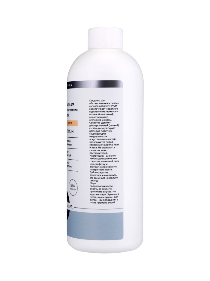 ESTELICA PROFESSIONAL OPTIMUM «Ангел», средство для обезжиривания и снятия липкого слоя 500 мл — профессиональное средство, обеспечивающее надёжное сцепление материалов с ногтевой пластиной и предотвращающее сколы и отслоения покрытия. Эффективно удаляет дисперсионный (липкий) слой и дегидратирует ногтевую пластину, делая его идеальным для натуральных и искусственных ногтей перед нанесением акрила, геля или лака.