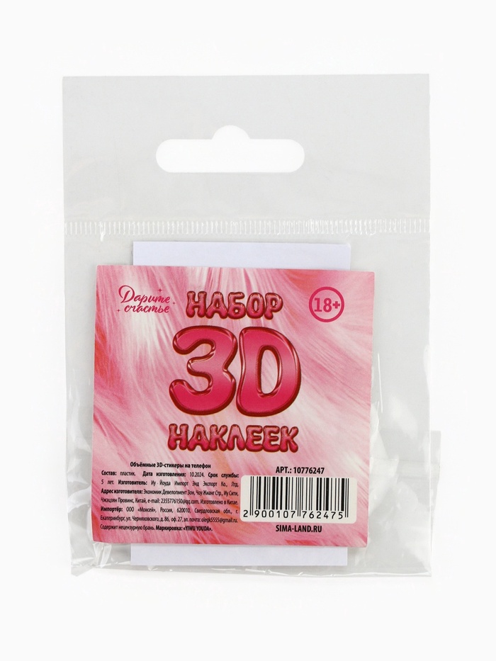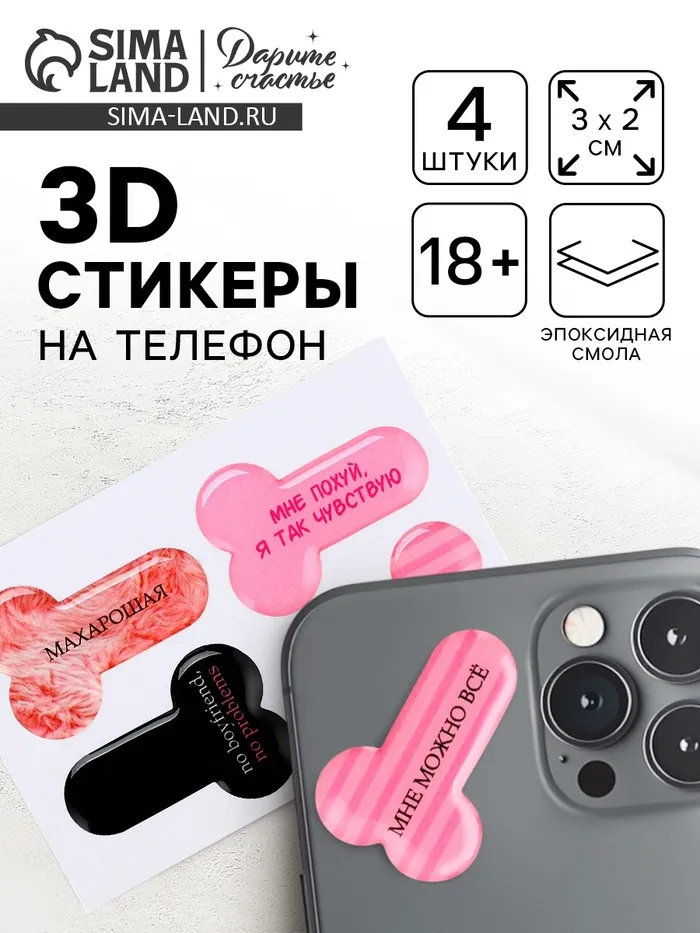 Объёмные 3D стикеры на телефон «18+», 4 шт, 3 х 3 см — Характеристики