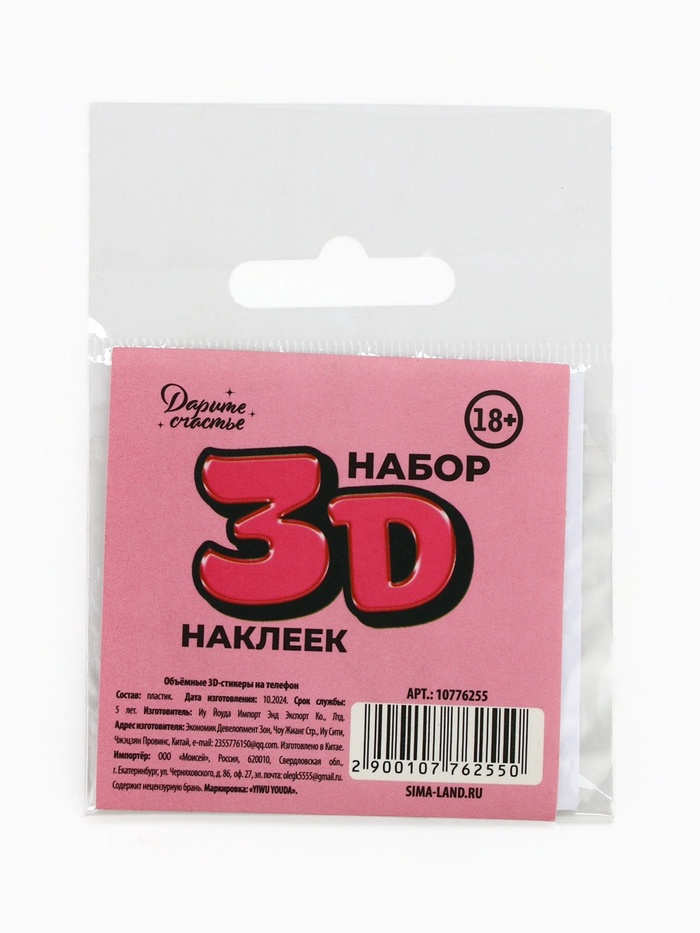 Объёмные 3D стикеры на телефон «18+», 4 шт, 5 х 1 см — Характеристики