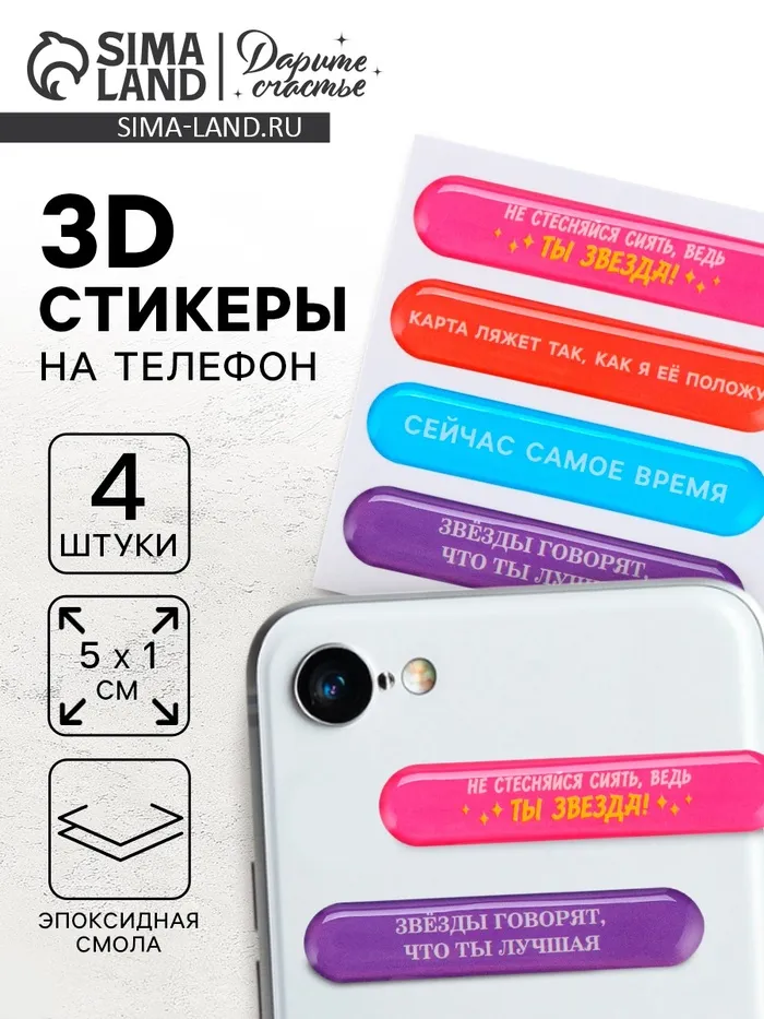 Объёмные 3D стикеры на телефон «Мотивация», 4 шт, 5 х 1 см — Характеристики