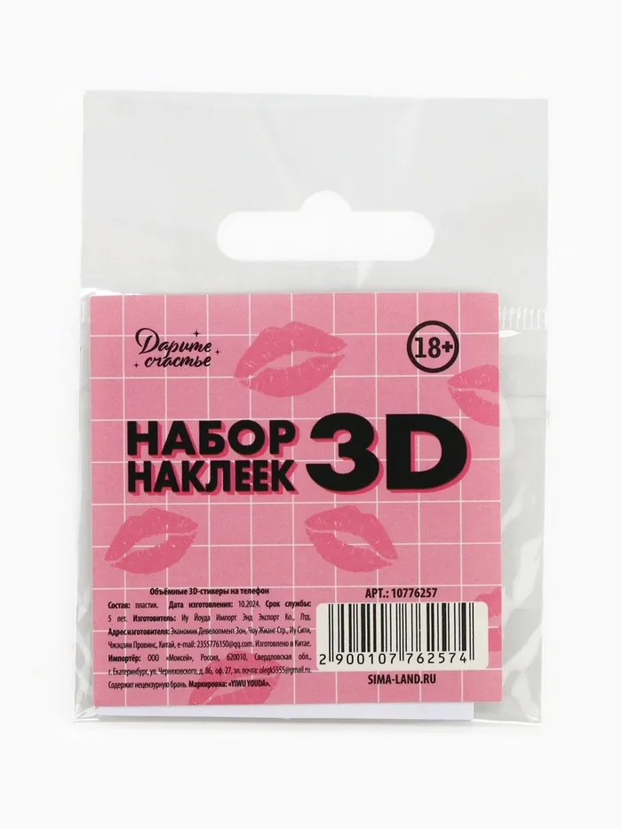 Объёмные 3D стикеры на телефон «Патрики», 18+, 4 шт, 5 х 1 см — Характеристики