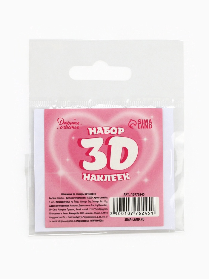 Объёмные 3D стикеры на телефон «Сердца», 4 шт., 3×3 см — Характеристики