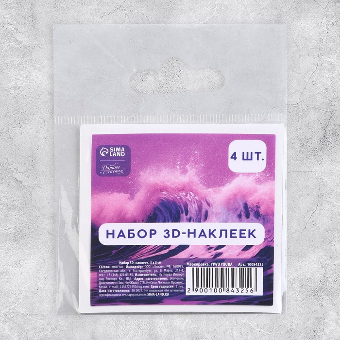 Объёмные 3D стикеры на телефон Violet, 4 шт., 3×3 см — Характеристики