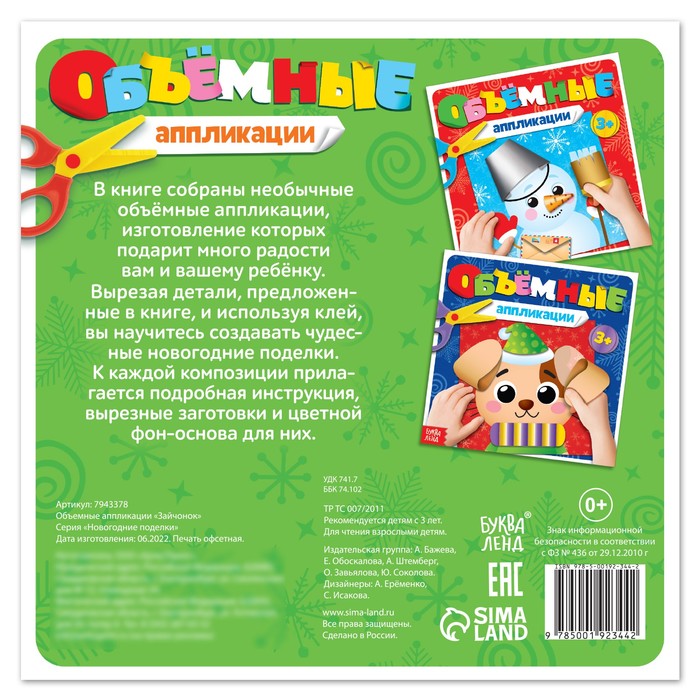 Объёмные аппликации «Зайчонок», 20 стр. — Характеристики