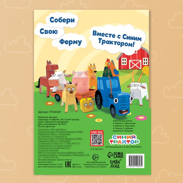 Объёмные фигурки «Однажды на ферме», А4, 10 фигурок, Синий трактор