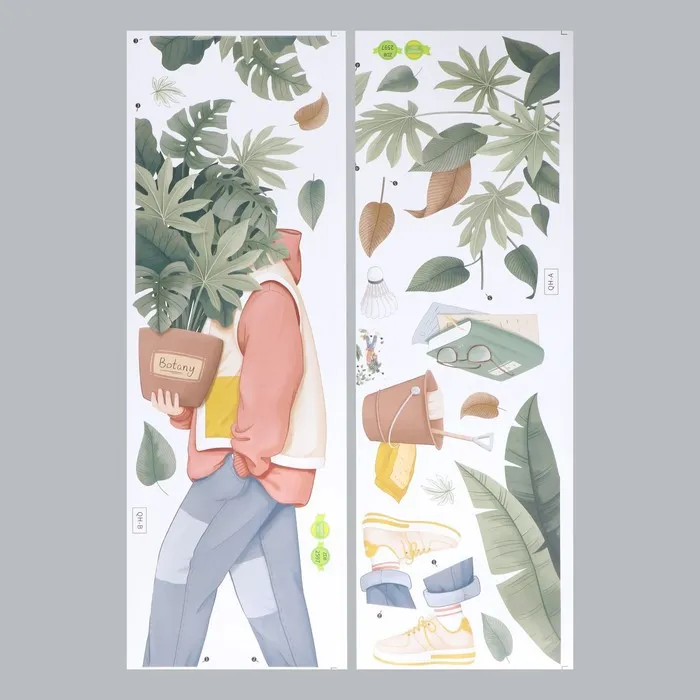 Наклейка пластик интерьерная цветная "Парень с пальмой в горшке"набор 2 листа 30х85 см