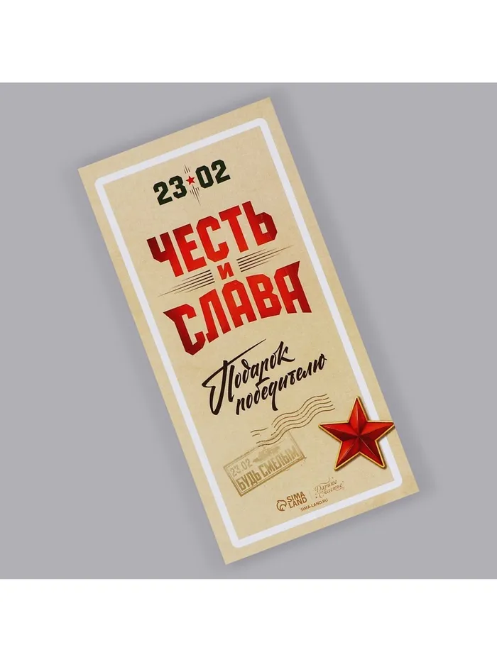 Обёртка для шоколада, кондитерская упаковка «С 23 февраля» 18.2 х 15.5 см — Характеристики