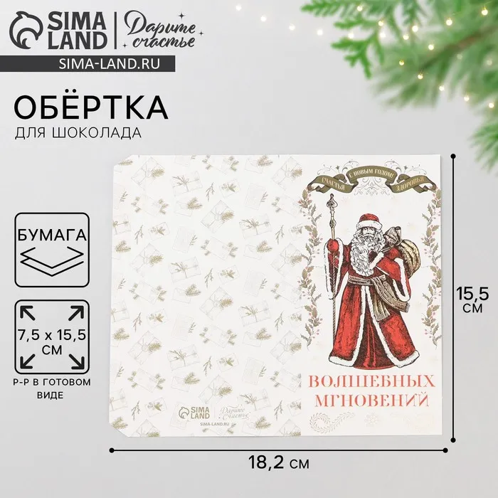 Обёртка для шоколада «Счастливого Нового года», 18,2 х 15,5 см