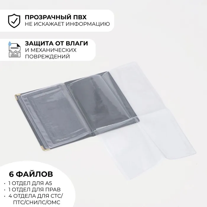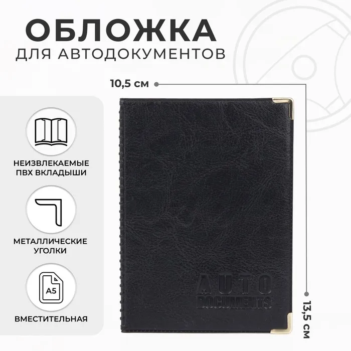 Обложка для автодокументов, с тиснением, уголками, чёрная — Характеристики