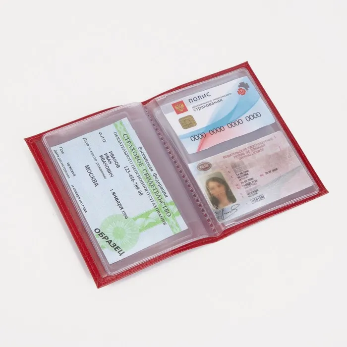 Обложка для автодокументов, с вкладышем, цвет красный — Характеристики