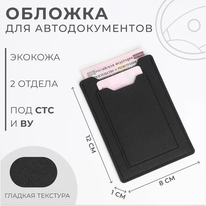 Обложка для автодокументов, СТС и права, чёрная — Характеристики