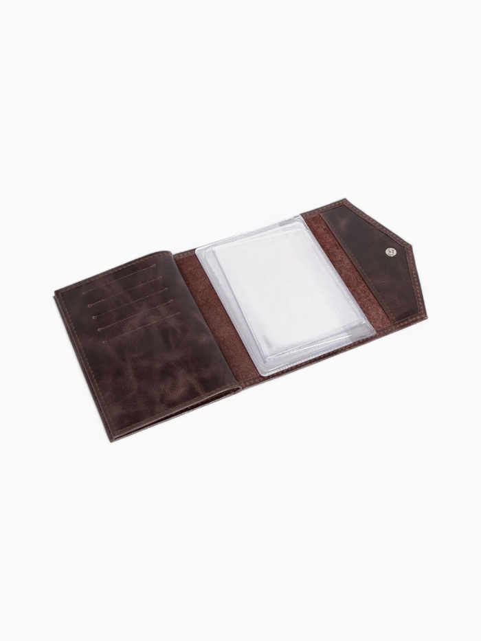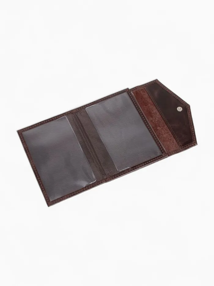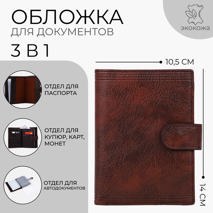 Обложка для документов 2 в 1, TEXTURA, на кнопке, для автодокументов и паспорта, коричневая — Характеристики
