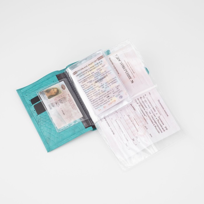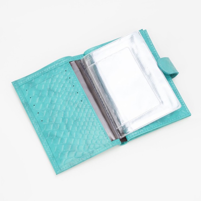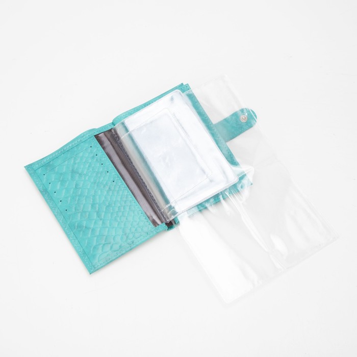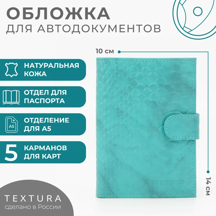 Обложка для документов 3 в 1: для автодокументов, паспорта, купюр на кнопке TEXTURA, цвет бирюзовый — Характеристики