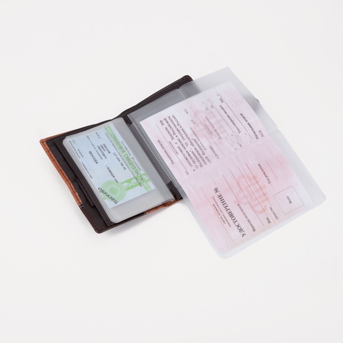 Обложка для документов 3 в 1: для автодокументов, паспорта, купюр, цвет коричневый — Характеристики