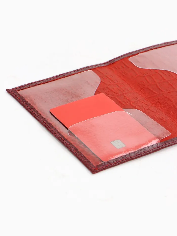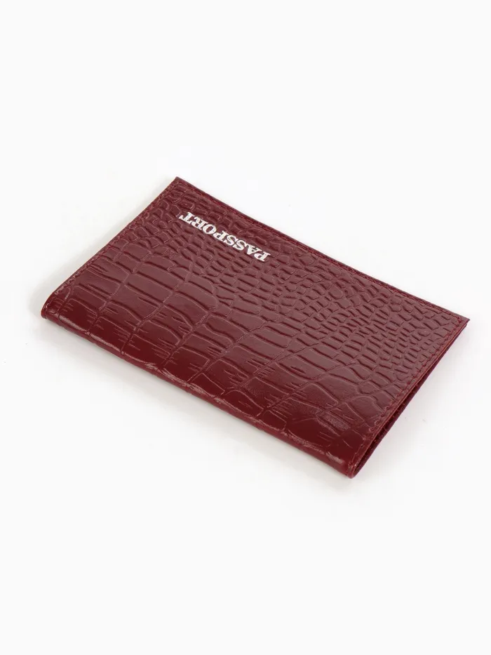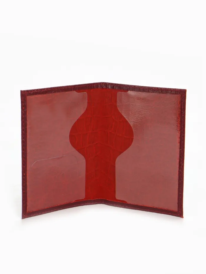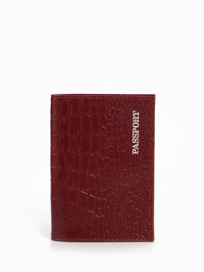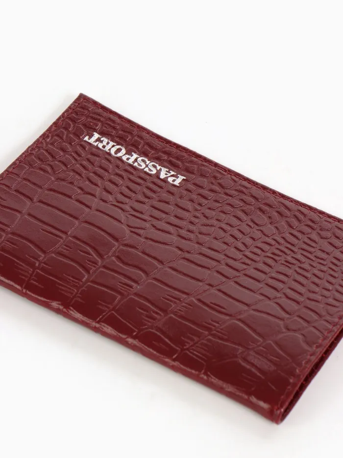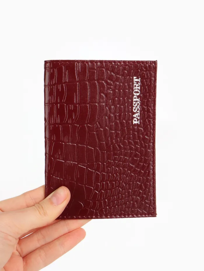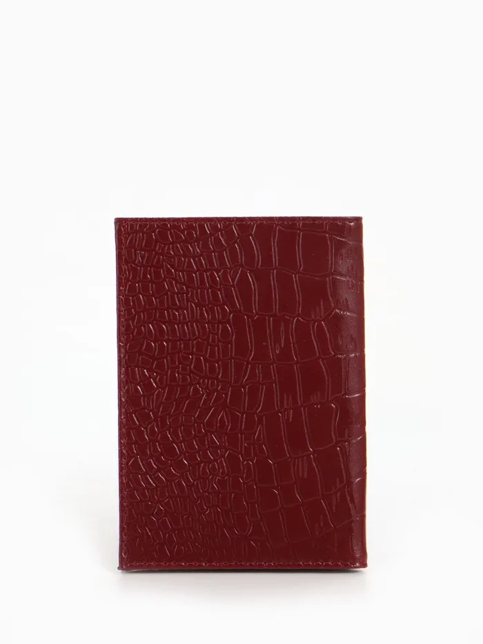 Обложка для паспорта, фактура крокодил, тиснение фольгой, бордовая — Характеристики