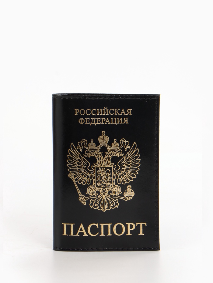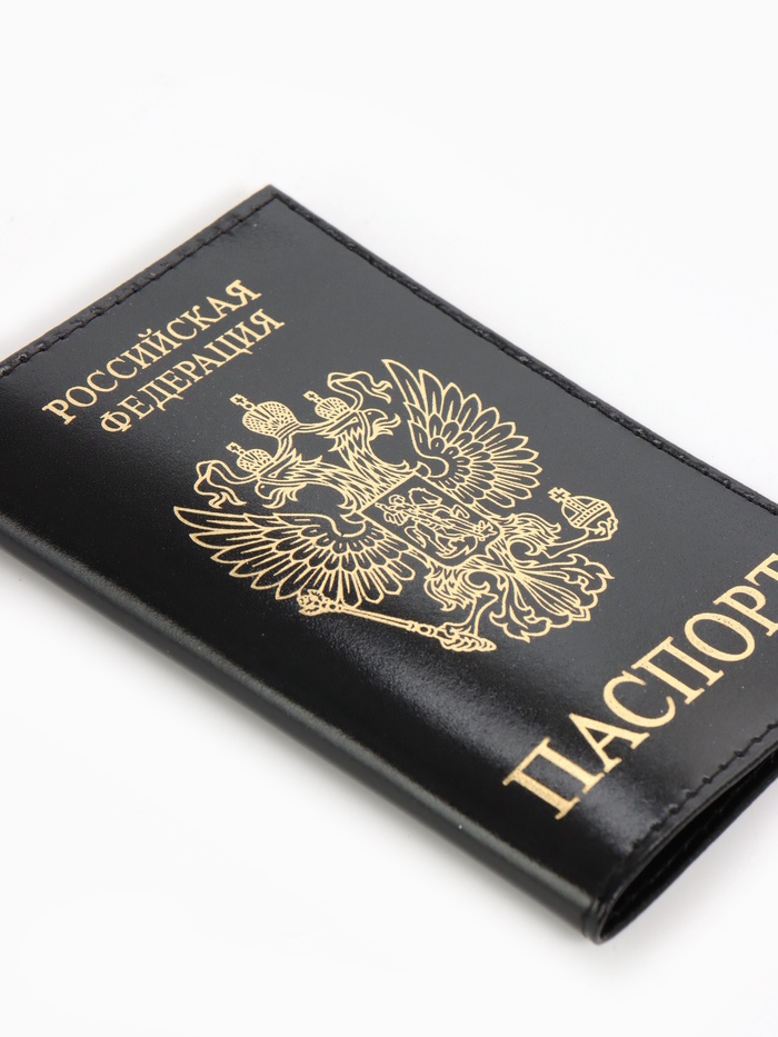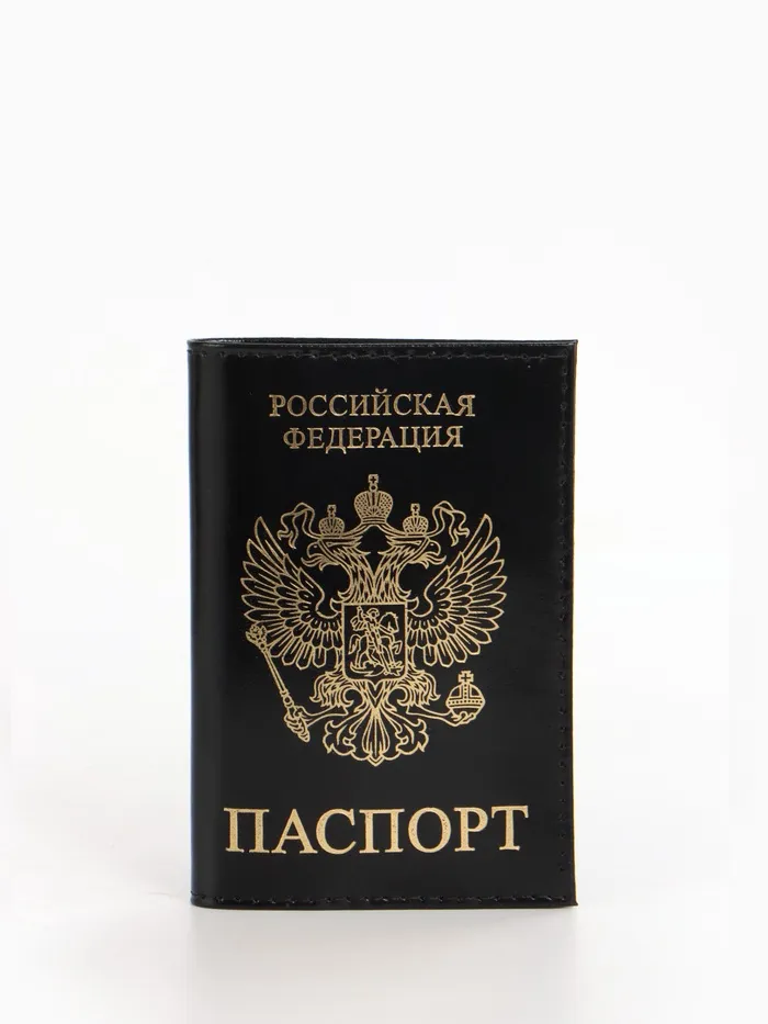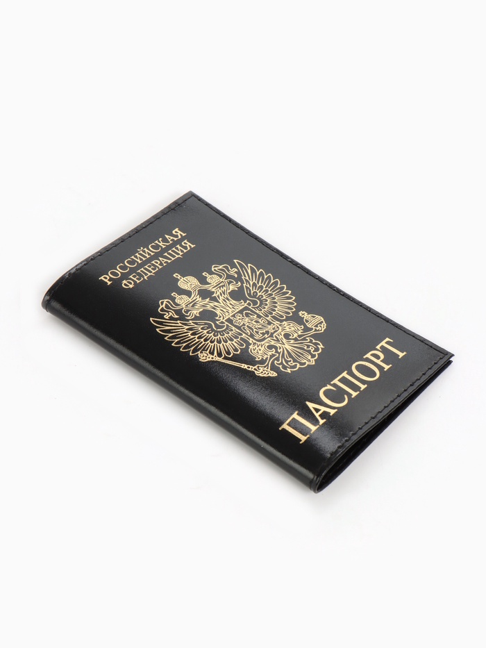 Обложка для паспорта, гладкая, с гербом, с тиснением фольгой, чёрная — Характеристики