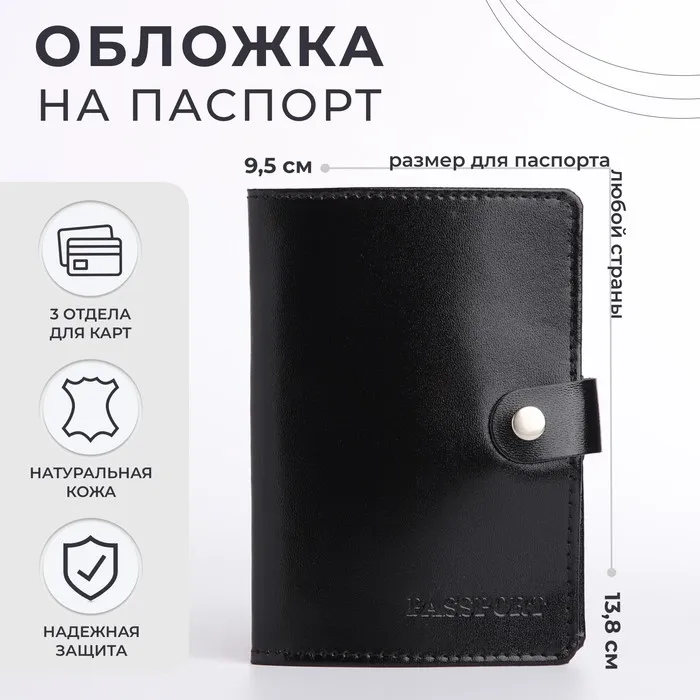 Обложка для паспорта на кнопке, цвет чёрный — Характеристики