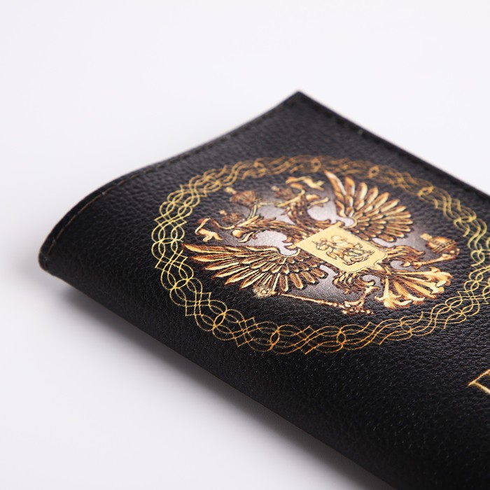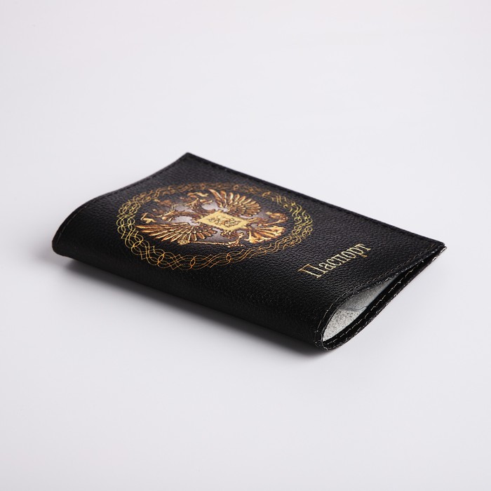 Обложка для паспорта, натруральная кожа, с гербом, чёрная — Характеристики