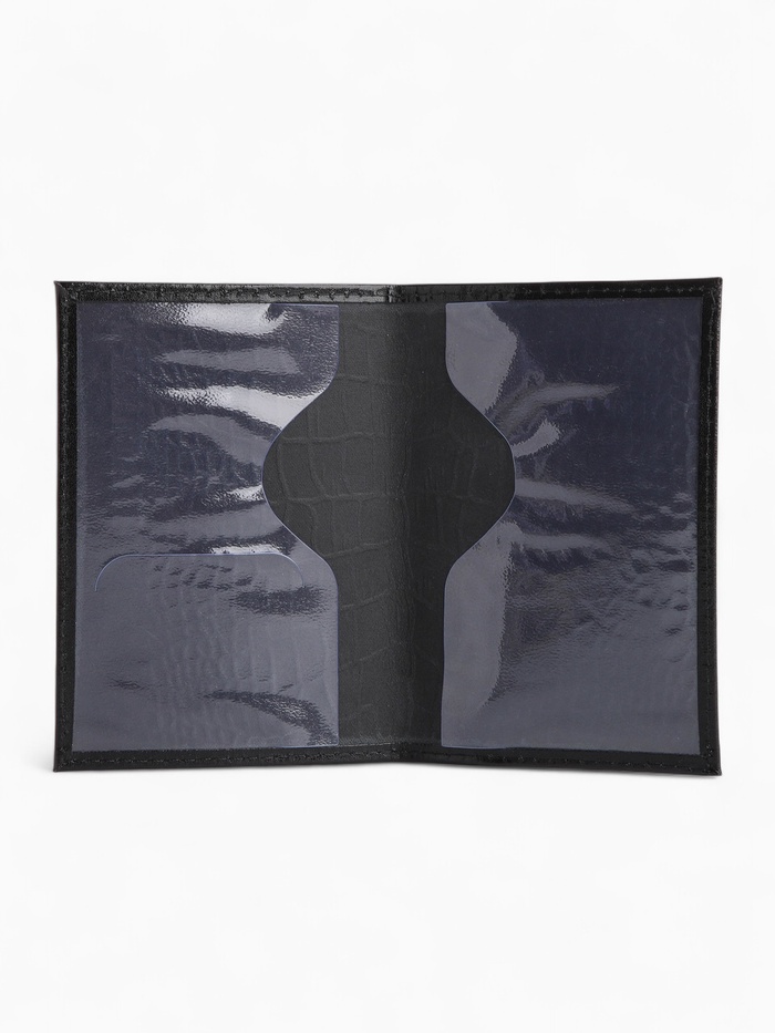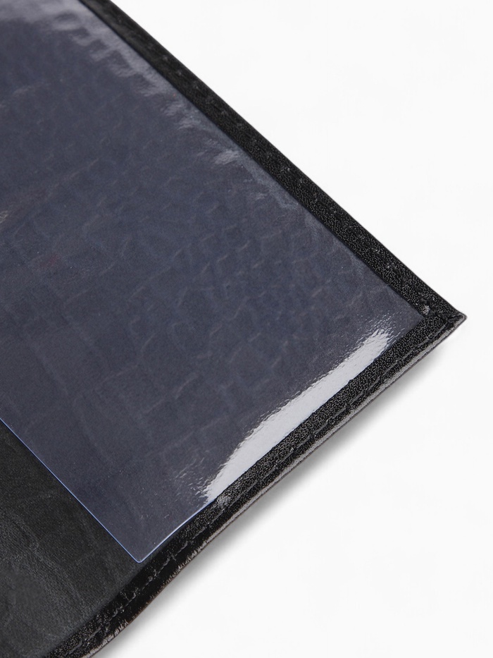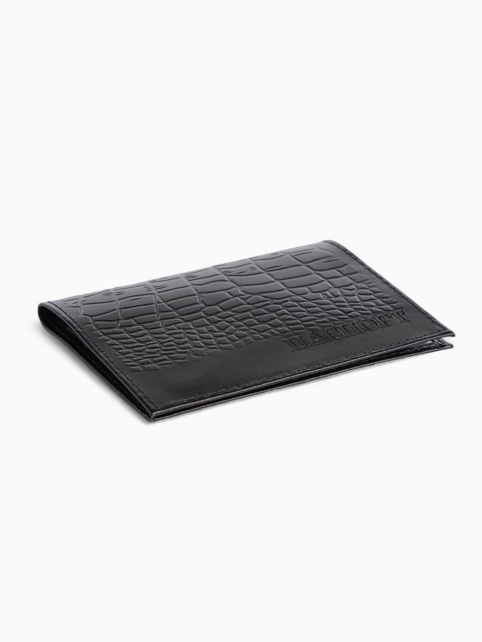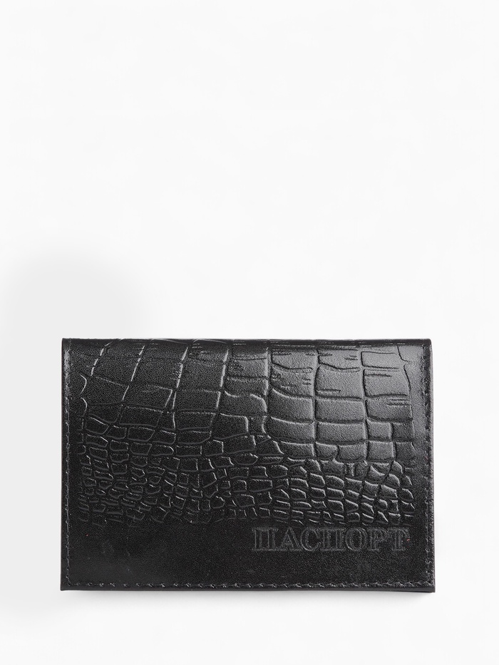 Обложка для паспорта, натуральная кожа, под крокодила, чёрная — Характеристики