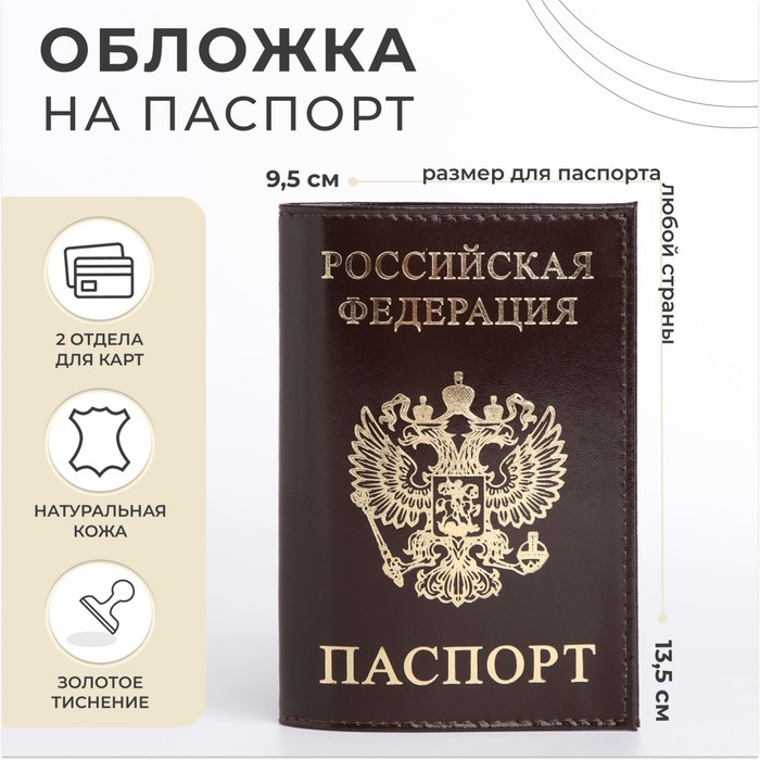 Обложка для паспорта, с гербом, с тиснением фольгой, гладкая, коричневая — Характеристики