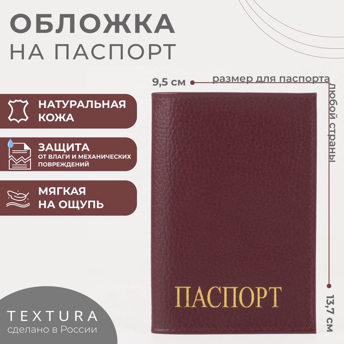 Обложка для паспорта, тиснение золотой фольгой, бордовая — Характеристики