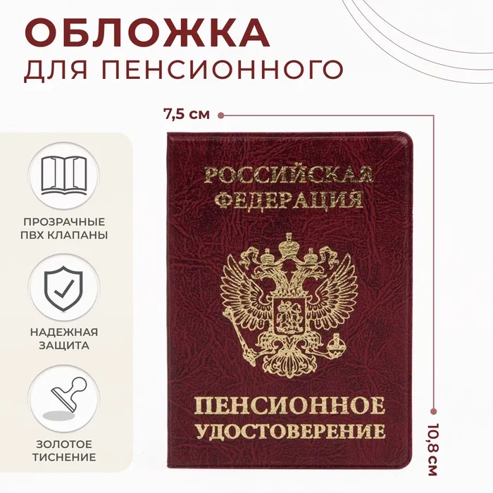 Обложка для пенсионного удостоверения, с гербом РФ, бордовая — Характеристики