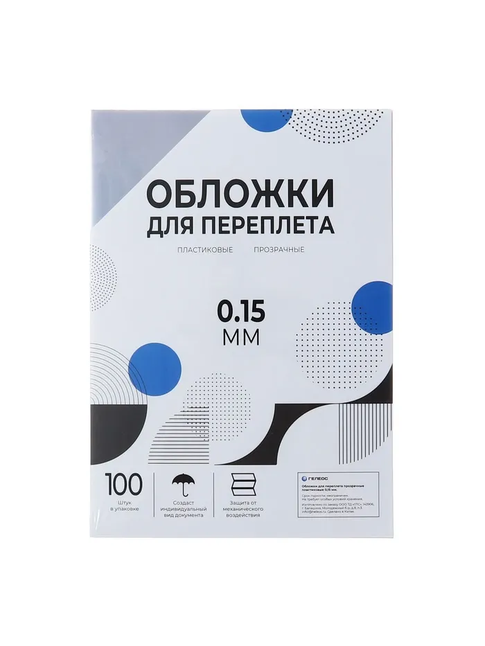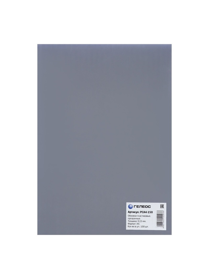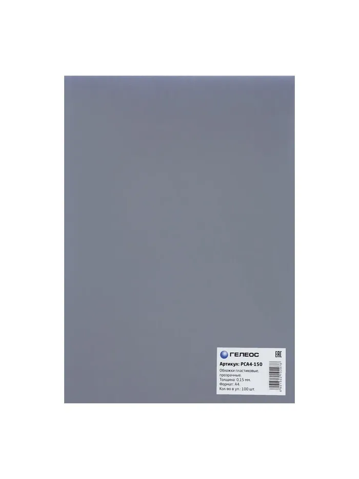 Обложки для переплета A4, 150 мкм, 100 листов, пластиковые, прозрачные бесцветные, Гелеос — Характеристики